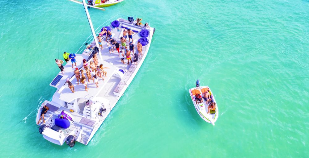 Perfecto para grupos que quieran disfrutar de un crucero privado por la costa, a bordo de un cómodo catamarán a velas de 50 pies de largo con animación, bebidas y snorkeling. Un fabuloso paseo recorriendo la costa hacia la increíble fiesta en la piscina natural. La mejor música, barman privado y bebidas.